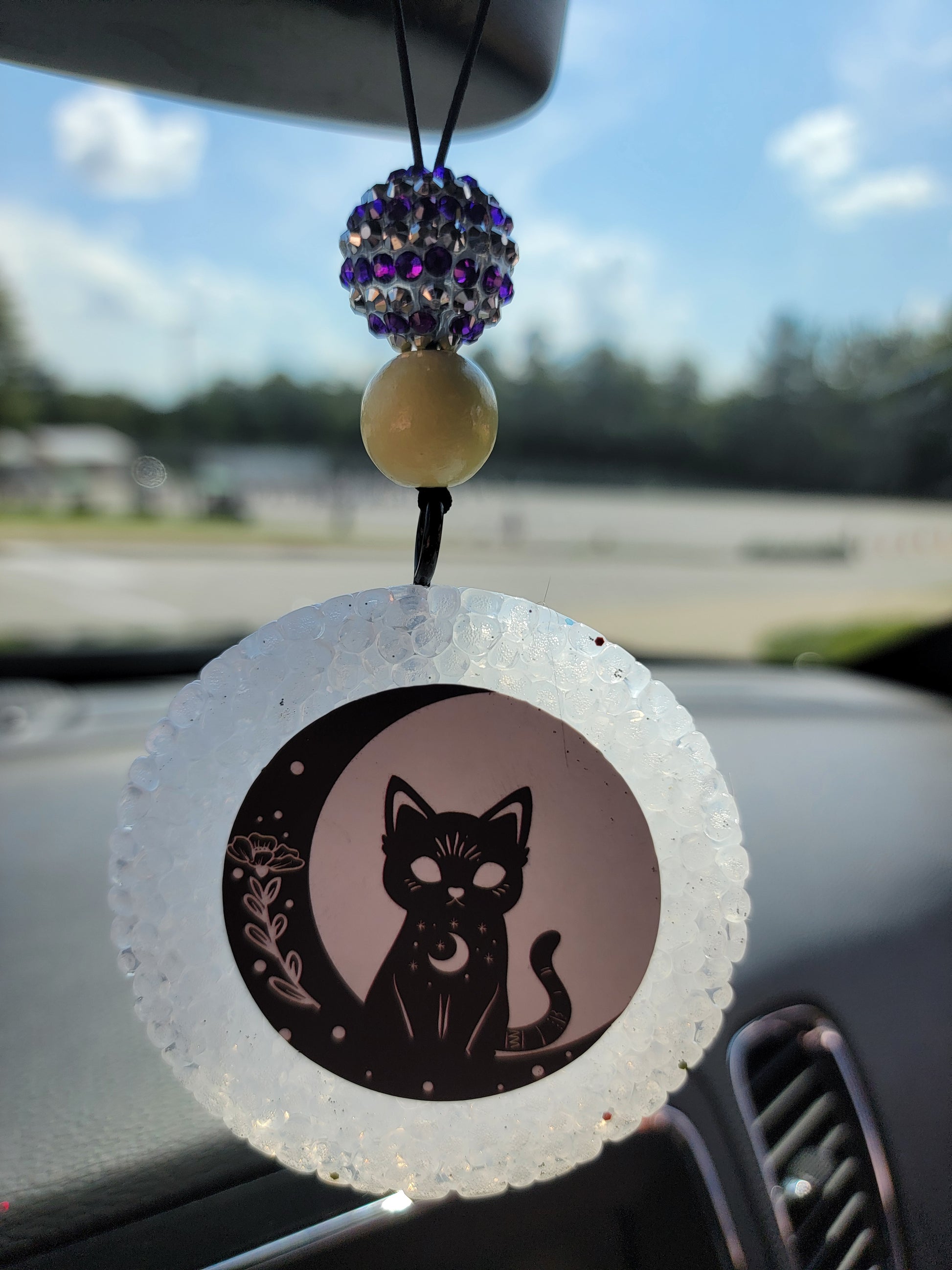 This isn’t your grandma’s black cat—it’s bold, colorful, and ready to hex your whole damn car. A circular freshie with bead accents and a glow-in-the-dark flex that keeps shining long after the candles burn out. Scented in Narcissist—a dangerously addictive fragrance that struts in like it owns the place (because it does).